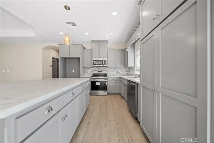 Welcome to this remarkable 2.2± acre horse property in Pinon Hills, offering a peaceful retreat with stunning views of wildlife and snowcapped mountains. This home features a tile roof and a spacious 3-car garage with 8-foot doors, complemented by numerous upgrades.The impressive open floor plan showcases large tile wood-looking floors, a tray ceiling, LED lighting, and tall baseboards. The gourmet kitchen features a huge island, marble countertops, stainless steel appliances, and a beautiful backsplash.This residence includes 4 bedrooms, 2 full bathrooms, and a half bath. Enjoy the convenience of a separate laundry room with quartz counters. The master bathroom is a standout, with dual sinks and a luxurious tile/glass shower with dual shower heads.Additional highlights include a tankless water heater and the property’s location in the award-winning Snowline School District. Experience the tranquility and elegance of this exceptional property!