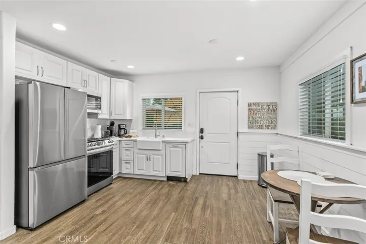 The home features well-appointed bedrooms including a spacious primary bedroom, providing retreat-like comfort. Within the primary bedroom, you’ll find the ensuite spa bathroom and walk-in closet with a built-in safe. What makes this property particularly special is the permitted one-bedroom, one-bathroom ADU, offering flexible options for additional living space, home office space, or potential rental income. The ADU comes furnished with a King size bed, dresser, two TV’s, appliances, and outdoor patio furniture. Other key features of the property include RV parking, solar, new plumbing, tankless water heater, porcelain flooring throughout, central video cameras, two separate electrical panels, and a custom built-in barbecue in the backyard.