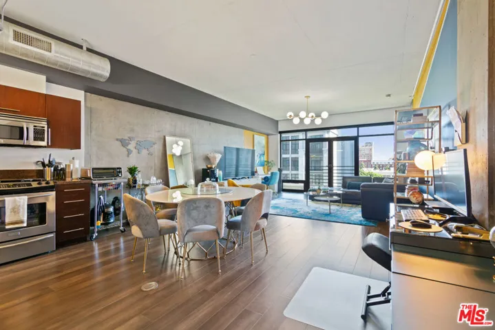 Xtra Large living space, many upgrades throughout, includes a separate storage unit next to your parking space, AND a dedicated EV charger. Rare opportunity to own one of the largest and most livable one-bedroom, one and a half bath units at Elleven in DTLA’s Social District. This wide and open floor plan offers true comfort and functionality, with soaring ceilings, engineered maple hardwood floors, expansive east-facing windows, and glass doors that open to a Juliet balcony for fresh air flow and unobstructed park and city views. The spacious kitchen with vented range connects seamlessly to the oversized living area, ideal for both entertaining and everyday living. Bathrooms have been updated, and the custom walk-in master closet with shelving and mood lighting is a showpiece. A larger utility room with designer shoe racks, full-size vented washer/dryer, and a 3-year-old AC system add to the livability and convenience. One parking space with EV charger and a large storage unit located next to parking are also included. Elleven is a modern, full-service high-rise with 24-hour front desk and security, on-site management, and a 4th-floor terrace featuring Viking BBQs, pool, spa, fire pit, and lounge areas. Steps to Crypto.com Arena, LA Live, the Convention Center, Whole Foods, coffee shops, Pine & Crane, Prank Bar, and the weekly Saturday Farmers Market. Close to Pico Metro, FIDM Park, and USC, this location keeps you connected to all of DTLA. With excitement building for the 2026 World Cup, 2027 Super Bowl, and 2028 Olympics, downtown is on the rise. This rare, larger residence at Elleven offers the lifestyle, space, and location that set it apart.
