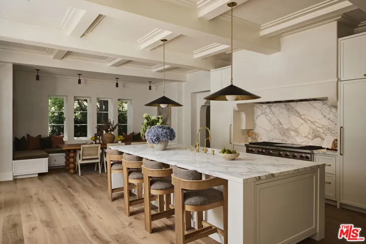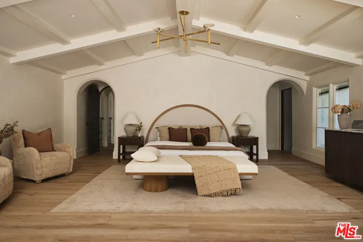 Casa Veleta is a reimagined Spanish jewel created by the renowned luxury home design and build partnership of Aeries Development and AMG. Fresh from a total renovation completed in 2025, classic 1920’s details embrace modern day conveniences. Behind a high hedge and past a wrought iron gate, a glamorous fountain and outdoor fireplace invoke historic Montecito. The courtyard sets the stage for a sensory experience beyond. Bathed in light, the entry stair hall and all interior walls are clad in hand-troweled plaster masterfully crafted by artisans. A grand living room with vaulted ceilings is ideal for large-scale entertaining. Elegant formal dining and wine rooms open to an outdoor kitchen and dining area. A gourmet kitchen with oversized marble island and banquette seating opens to a vast terrace and pool beyond. The primary suite is a world apart, with large marble bath, retail quality closet, and a wall of French doors opening to a private terrace with fire feature. Three additional bedrooms (with walk-in closets and en-suite bathrooms) and a common terrace space complete the upper floor. Additional features include a private office (or generous fifth bedroom) with fireplace and full en-suite bathroom, a complete chefs/catering kitchen, a gym/wellness room with sauna that leads directly out to the pool and hot tub, and a gorgeous separate guest villa/ADU. This is an exceptional opportunity to own a piece of living art on the prized 600 block of Arden. Surrounded by important estates, this is hands-down one of the finest locations in Beverly Hills. Casa Veleta is a rare gem for the most discerning buyers.