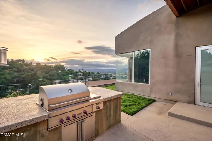 A Private Architectural Masterpiece in the SkyPerched high above the city with commanding, unobstructed panoramic views that stretch beyond the horizon, this one-of-a-kind custom-built concrete estate spans over 5,400 square feet of uncompromising elegance and design. A true architectural triumph, this secluded gated sanctuary was crafted for those who not only value total privacy but demand it and the finest things life has to offer.Every square inch of this home is a deliberate expression of artistry and refinement. From hand-carved, imported wood beam ceilings that whisper tales of old-world craftsmanship to radiant heated concrete floors that seamlessly blend luxury with functionality–no detail was spared. Soaring ceilings and expansive living areas flow effortlessly throughout, designed for grand-scale entertaining and intimate moments alike.The kitchen is not merely gourmet–it is legendary. Literally designed for one of the top five five-star chefs in the world, it is a culinary marvel equipped for both performance and presentation, boasting custom finishes, rare materials, and impeccable attention to detail.Natural light floods the home through floor-to-ceiling glass walls, transforming every moment of the day into a living work of art. The secondary en suite bedrooms are oversized and serene, offering mesmerizing views of the meticulously manicured backyard and surrounding landscape.The primary suite is beyond compare–an indulgent retreat with cavernous proportions, custom cabinetry, and a bespoke bedframe featuring a pop-up television reminiscent of the world’s finest luxury penthouse suites. The jaw-dropping walk-in closet is a boutique experience unto itself, and dramatic windows frame your view of the shimmering pool and sprawling entertainment spaces.Step outside into your own private resort. A spectacular pool, elevated Jacuzzi, and limitless views transport you to another world. And then, there’s the rooftop deck–an expansive sky-lounge that places you seemingly in the clouds. Whether hosting unforgettable soirees or enjoying quiet stargazing, this space elevates living to an entirely new level.Minutes from the vibrant heart of Sherman Oaks and the elite enclave of Beverly Hills, yet feeling worlds away–this home is not just a residence, it is an experience. A rare and remarkable opportunity for those who not only appreciate luxury but expect it.You’ve arrived. Welcome home.