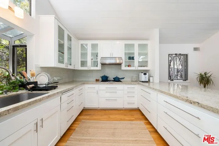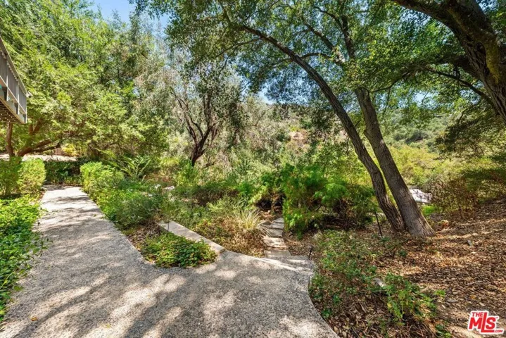 Welcome home to your own gated, private Topanga sanctuary. Enter the gates and step into a realm of natural, timeless beauty with this exquisitely crafted Cape Cod estate, where every detail has been curated to evoke warmth and harmony with nature. Gleaming wide-plank oak floors, soaring vaulted ceilings, and a flood of natural light create a sense of airy grandeur, while expansive picture windows and glass doors dissolve the boundaries between indoors and out. The culinary heart of the home is a gourmet chef’s kitchen, appointed with premier stainless-steel built-ins, dual ovens, and artisanal limestone countertops, a space as functional as it is beautiful. The adjacent dining area, anchored by a showpiece fireplace, flows effortlessly to a sunlit deck ideal for morning lattes, intimate sunset dinners, or lively gatherings, with no neighbors in sight. The primary suite is a private retreat, boasting its own fireplace, generous custom walk-in closets, and a large en-suite bath complete with a deep soaking tub and serene garden views. On the lower level, two spacious guest suites share a luxurious full bath, complemented by a dedicated laundry room and a state-of-the-art infrared sauna; a haven for wellness and relaxation. Beyond the interiors, terraced gardens and manicured lawns unfold to reveal a seasonal creek and meandering woodland paths, offering moments of tranquility and natural beauty at every turn. Just minutes from Endless Color, Pine Tree Circle, The Valley, Malibu, and an abundance of scenic hiking trails, the setting is both connected and remote. An attached two-car garage with a Tesla charging station ensures modern convenience, seamlessly integrated into this timeless retreat.
