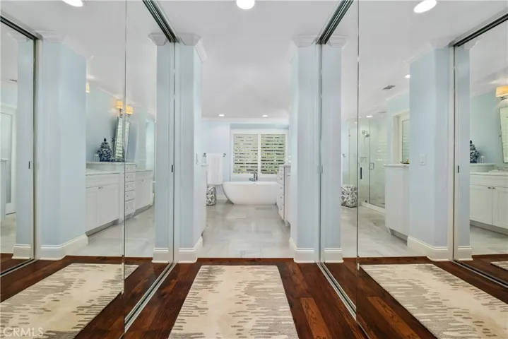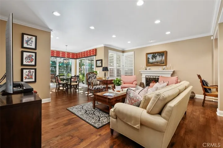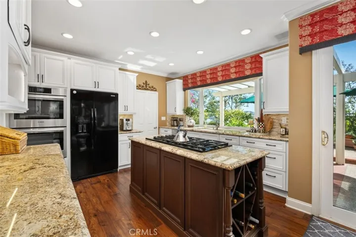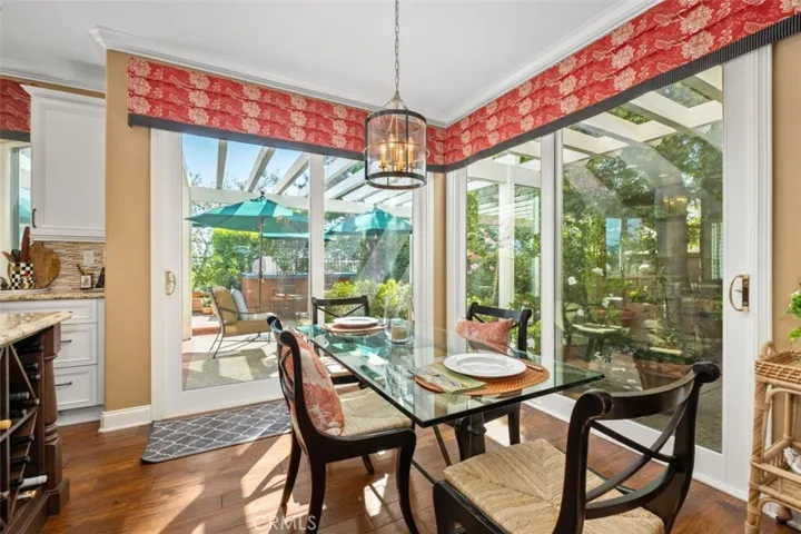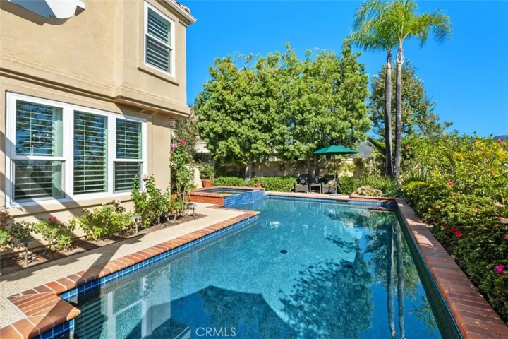 Welcome home to “Casa Loma Alta del Sur” – the house on the south hill! This stunning 4 bedroom, 3 1/2 bathroom, 3 car garage home has been beautifully updated with impeccable taste and quality finishes and is located at the end of a cul-de-sac street in Dove Canyon, a sought-after private gated golf community with a Jack Nicklaus Signature 18 hole golf course*The minute you walk in to the entry and living room, you will feel enveloped in this exceptional residence as you look around at the spiral staircase with white spindles and stained cap, high ceilings, custom woodwork, gorgeous dark wood floor, high-end carpet, plantation shutters, glass block windows and so much more*The dining room is beautiful with a custom wood frame entry inviting you in, and wainscotting on 3 walls*The remodeled kitchen has custom Omega white cabinets with a coffee wash, granite countertops, quartz and stone full backsplashes, a large center island with a 6-burner black Decor down-draft cooktop and a wine rack*There is a walk-in pantry and high-end appliances including a Kitchen Aid refrigerator and Bosch double ovens, and the adjacent breakfast room has 2 Renaissance sliding doors to bring in the light*The warm family room has a fireplace, a custom built-in desk and wet bar*Travel up the staircase to enter the double doors to a gorgeous primary suite with retreat, 2 closets and a remodeled bathroom with slipper tub, large shower with frameless enclosure, custom Omega white cabinetry with divided vanities, marble countertops and Baldwin crystal knobs*Down the hallway you’ll find 3 secondary bedrooms, 1 with its own remodeled bathroom with a shower, refaced cabinets and a vessel sink and the other 2 bedrooms share a remodeled bathroom with a free-standing white wood vanity with quartzite countertop and a tub/shower with a newer shower enclosure*Features include newer double-paned windows, newer HVAC, concrete tile roof, Ecobee thermostat system, Toto and Kohler toilets and sinks, Restoration Hardware mirrors and lighting, mirrored closet doors, and much more*Enjoy your private backyard w/large pool & spa w/dark Pebbletech finish, custom-built brick & tile dining center w/Viking stainless steel barbeque & refrigerator, a newer patio cover and a peaceful view of mature trees & the mountains*Enjoy Dove Canyon amenities including pool & spa, tennis & pickleball courts, Sycamore Park w/tot lot, basketball court, & a guard-gated entry*Attend excellent Saddleback schools*No Mello Roos.