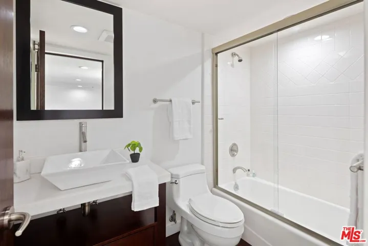 Penthouse with Soaring Ceilings & Exceptional Outdoor Space! Welcome to this Stunning Front Corner 2BR bedroom plus Loft/3rd Bedroom penthouse offering over 2,000 square feet of thoughtfully designed living space, dramatic cathedral ceilings, and beautiful hardwood floors throughout. Bathed in natural light from oversized windows, the expansive open concept living and dining area flows seamlessly to a private patio, perfect for indoor-outdoor entertaining. The kitchen is ideal for hosting or everyday living, while the soaring ceilings add volume and elegance to the space. The versatile loft/third bedroom En-suite doubles as a built-in office area and opens to its own private terrace, providing the ideal work-from-home setup or a peaceful retreat. The primary suite offers generous proportions, ample walk-in closet, and private balcony for a serene atmosphere. Located in a prime Brentwood neighborhood, this penthouse combines luxury, function, and location in one exceptional package. Laundry inside and 2 Car S/S Parking. Low HOA Dues. Close to Restaurants and Grocery.