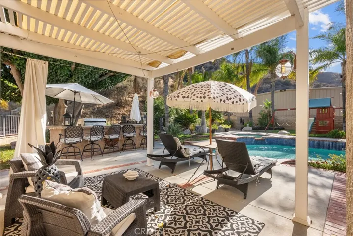 Step outside to the ultimate entertainer’s backyard with a sparkling pool, relaxing spa, cozy fire pit, built-in BBQ, and plenty of space to host unforgettable gatherings. For adventurers and RV enthusiasts, the property includes a large paved RV area with full hookups and dump station. Perfect for RV’s and all the toys. Attached is the 3-car garage providing ample storage and convenience.