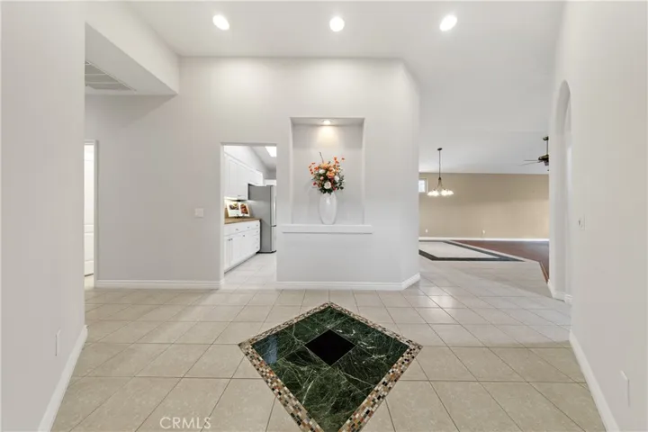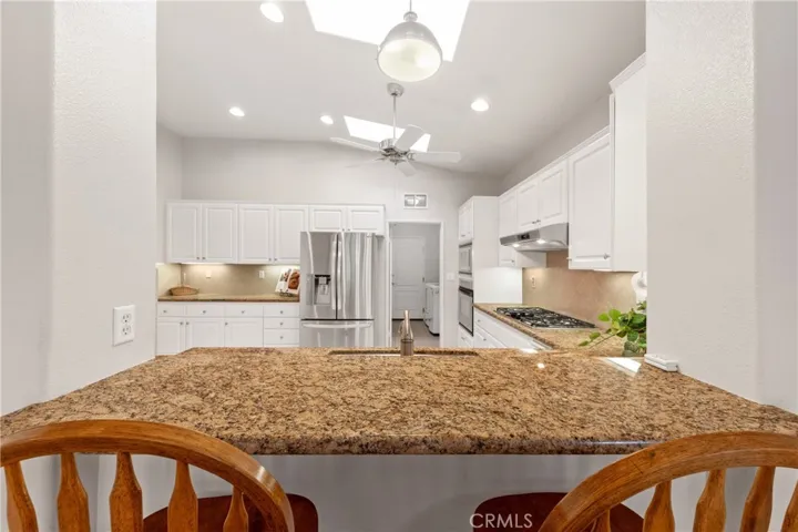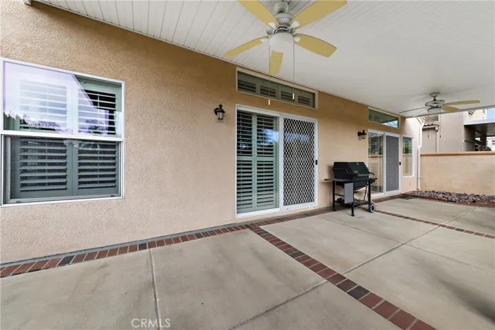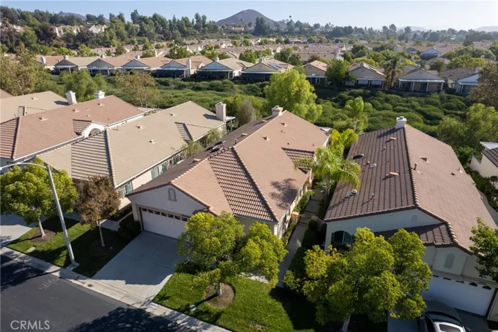 BEAUTIFUL SINGLE STORY 2,100 square foot home in The Colony, one of SoCal’s most desirable GATED SENIOR COMMUNITIES. A brick-accented walkway welcomes you to the double entry doors with security screens. Featuring plantation shutters throughout, upgraded tile & wood type flooring, wide baseboards & soaring ceilings. The large kitchen boasts white cabinets, stainless appliances, granite countertops and so much storage space with convenient pull-out shelves in many cabinets. The spacious great room is perfect for family gatherings with a fireplace & media niche. Walk out onto your solid aluminum patio cover with views to a WIDE NATURAL GREENBELT, AFTERNOON SHADE & easy-care landscaping. The spacious primary suite has plenty of room for your bed, a sitting area & offers a walk-in closet with built-in storage. The sumptuous bath is finished in spectacular marble with dual sinks, large soaking tub & a shower with a luxury rimless door. One of the bedrooms has built-in desks/storage cabinets and a walk-in closet with shelving. The 3rd bedroom is oversized and has a guest bath nearby. Indoor laundry with a sink, lots of storage cabinets, pull-out shelves and washer/dryer are included. The garage has lots of built-in cabinets, a workbench area, room for a golf cart + 2 cars & a newish garage door opener. You will love the ENERGY SAVING FEATURES of Low-E windows, attic fan, attic heat shield & extra attic insulation. Water heater installed in 2022 with a circulating pump. Whole house water filtration system replaced in 6/2023. The Colony is a PREMIER GATED SENIOR COMMUNITY for ages 55+ with a RESORT CLASS CLUBHOUSE, year-round pool, 2 spas, lighted pickle ball/paddle tennis and tennis courts. You can enjoy the gym, library, ping pong, billiards, hair/nail salon. There are groups & activities for all interests with an auditorium for shows, dances, banquets, concerts, movies, bingo & parties for all occasions. A privately owned 18-hole golf course is inside the gate. The HOA waters & maintains all front landscaping. Guard gated entry and 24-hour security patrol give you peace of mind. Close to stores, restaurants, medical, casinos and wineries. You will love this turn-key home, ready for you today. Welcome to the Colony with friendly neighbors and sense of community as you enjoy TRUE RESORT STYLE SENIOR LIVING.
