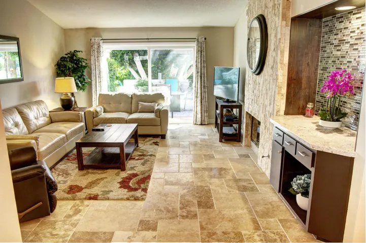 Conveniently located off Cook St. near the 10 Freeway lies the guard gated community of Desert Falls Country Club. This community is home to a beautifully updated move-in-ready single-story condo, with 2 bedrooms, 2 bathrooms, and 1330 sq. ft. of living space. Enter the charming living room, featuring tile floors, high ceilings, stack-stone fireplace and bar area, and views of the back patio. Adjacent to the living room is a separate dining area. The light and bright kitchen boasts quartz counters and stainless-steel appliances. The generous master suite has loads of closet space, with direct access to the back patio. The master bath has dual quartz vanities and a large walk-in shower. Your guests will appreciate the roomy 2nd bedroom and the separate full bathroom. Additional features include a separate laundry room and 2-car garage. Relax and unwind around the firepit on your large patio, with views of the Avondale golf course, while sipping your favorite beverage. The beautiful ficus tree beyond provides privacy and shade from the morning sun and is maintained by the HOA so always looks appealing! Remodeled in 2018 and with no unit above, this condo offers privacy and comfort as a vacation retreat or full-time abode. One of many community pools is located close by. Desert Falls Country Club offers beautiful desert scenery, spectacular views, fitness and health center, lighted tennis/pickleball courts, clubhouse with restaurants that host numerous events, and an 18-hole, championship golf. Offered Turnkey Furnished, per Sellers’ Inventory List. Come experience the best of Desert living!