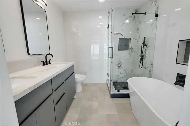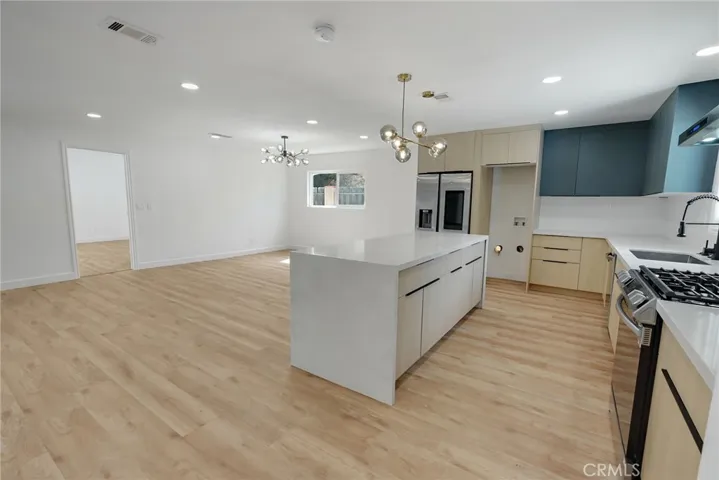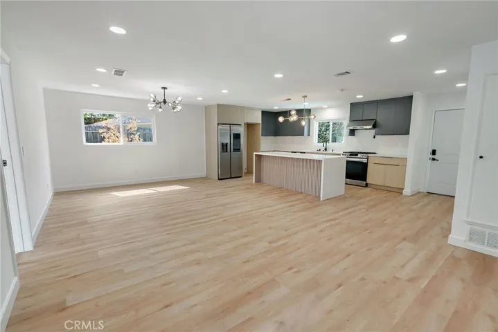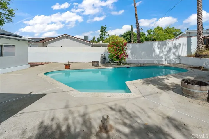 Fully remodeled 4-bed, 2-bath home in sought-after Woodland Hills. This modern retreat features high ceilings, recessed lighting and new waterproof luxury vinyl plank floors throughout. The open living area centers around a sleek fireplace and flows into a chef’s kitchen with quartz countertops and stainless steel appliances with smart Wi-Fi features. The primary suite offers a large walk-in closet, backyard access and a spa-style bath with dual vanities, walk-in shower and standalone soaking tub. Three additional well-sized bedrooms are located on the other side of the house, surrounding a second luxurious bathroom. Enjoy sunny days by the pool in your private backyard oasis, and add outdoor dining and tropical landscaping for your California dream home. Upgrades include new copper plumbing, upgraded electrical panel (2014), Tesla solar panels, dual-pane windows, finished two-car garage with epoxy floors, newer HVAC and water heater. Conveniently located near the 101, Westfield Topanga, Kaiser and Warner Center – this move-in-ready home blends style, comfort and location.