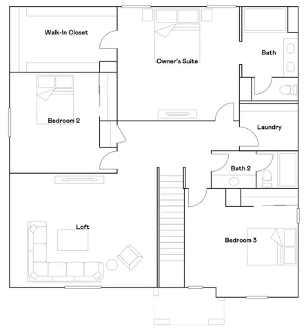 NEW CONSTRUCTION! Includes Upgraded Flooring! Ready for Quick Move-in! This new two-story home offers ample room to live and grow. A bedroom and full bathroom are secluded near the front off the entry, adjacent to a spacious and inviting open-concept layout where the kitchen, living and dining areas meet. Two additional bedrooms and a luxurious owner’s suite share the second floor with a versatile loft.The kitchen features new caledonia granite counters and white cabinetry.