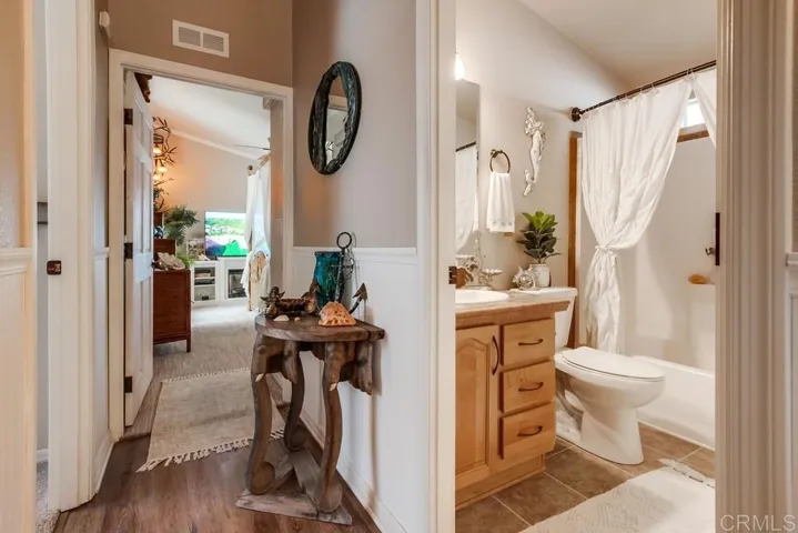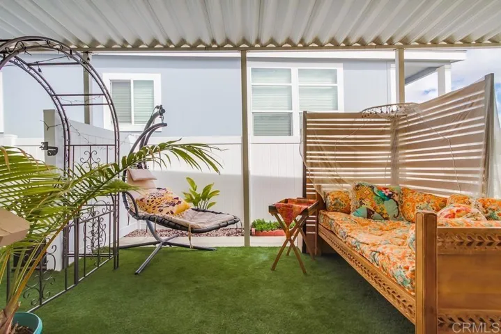 Welcome to Rancho San Luis Rey, a highly desirable 55+ rent-controlled community! SPACE 419 beautifully maintained 2009 manufactured home offers 2 bedrooms, 2 bathrooms, plus a versatile third room perfect for a den, office, or guest space! Soaring cathedral ceilings and oversized windows fill the home with natural light. Gourmet Kitchen – Enjoy an open-concept layout with an abundance of maple cabinetry, a large work island with bar seating, and ample counter space. Inviting Outdoor Living – Relax on the large front porch or enjoy the private, fenced yard with a white vinyl security fence for added privacy. Comfort & Style – Elegant vinyl plank flooring throughout, with plush carpet in both bedrooms for added warmth. Stay comfortable year-round with central A/C. This light, bright, and airy home is move-in ready and located in a welcoming community with fantastic amenities! Rancho San Luis Rey Park is an enclave of 433 units with an abundance of amenities. tennis courts, TWO clubhouses, pools, spas and convenient laundry facilities, boat/RV storage, billiard room, Dog Park, Nearby bike path to the beach. SPACE RENT is $561 month approx (plus utilities).