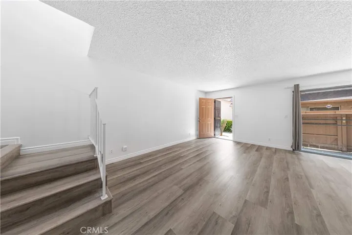 includes upgraded flooring and freshly painted interiors. The spacious living room opens to the dining area with direct access to a relaxing private patio. The