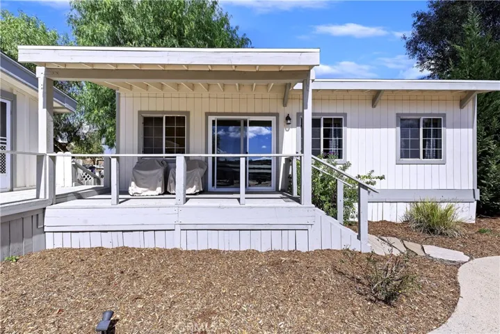 The home includes five spacious bedrooms, five baths, & an office. The luxurious primary suite features a cozy fireplace, wood-paneled ceiling, dual walk-in closets, & a spa-inspired bath with jacuzzi tub & large shower. Additional highlights include surround sound, plantation shutters, dual A/C units, & expansive covered patios for outdoor entertaining. A separate manufactured home offers 2 bedrooms, 2 baths, an office, covered patios, & enclosed
