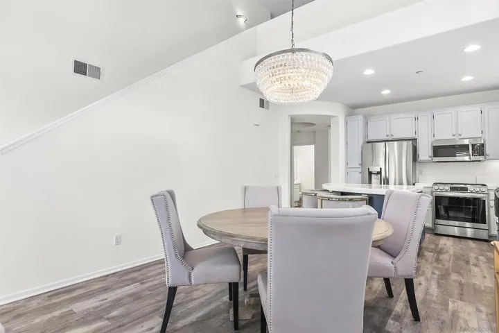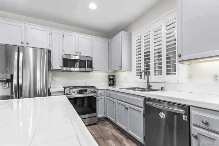 Welcome to this beautifully maintained 2-bedroom, 2-bathroom townhome with an added loft space—perfect for a home office, guest room, or creative studio—located in the desirable gated community of Fairway Villas. This unit has GOLF COURSE VIEWS of Singing Hills 10th hole! Step inside to a bright and airy open-concept layout featuring luxury vinyl plank and new carpet throughout. The updated kitchen is a chef’s delight, complete with a central island, tile countertops, stainless steel gas range, built-in microwave, and refrigerator. The spacious main floor consists of the living and dining areas that flow effortlessly and offer views, making entertaining a breeze. Upstairs, the versatile loft provides additional space to suit your lifestyle—ideal for working from home or relaxing in a cozy reading nook. The generous primary suite offers a walk-in closet, dual vanity sinks, and private toilet and shower room. Other features include huge walk-in closet on lower level, attached 1-car garage, and large laundry room.