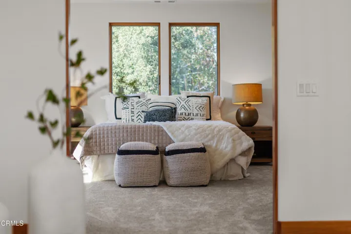 Two Craftsman-inspired homes combine elegance and modern comfort on this 0.53+/- acre Santa Ynez property, featuring a 3,722+/- sq. ft. residence and a 667+/- sq. ft. detached residential second unit. The lot offers the potential to be subdivided into two 1/4-acre parcels, creating an additional buildable site.Thoughtful design and fine finishes are showcased throughout, including rich wood floors, cherry and hickory interior doors, copper gutters, and custom cherry cabinetry. The versatile floor plan features four bedrooms and three-and-a-half baths, including two primary suites, ideal for multi-generational living or hosting guests. A dedicated office with built-in desks provides the perfect workspace, while formal and casual dining options include a sunlit breakfast nook and a refined dining room. The chef’s kitchen boasts a large island, custom cabinetry, butler’s pantry, Sub-Zero built-in refrigerator, 36” Wolf range, and Wolf microwave drawer. It flows easily into the inviting living room, where soaring ceilings and a gas fireplace create a dramatic yet welcoming centerpiece. Anderson windows and patio doors frame views of the lush landscaped grounds, enhancing the seamless indoor-outdoor lifestyle. Outdoors, enjoy manicured lawns, a spacious back patio for entertaining, and the convenience of an attached three-car garage. A timeless home blending quality craftsmanship and modern amenities in the heart of Santa Ynez Valley.