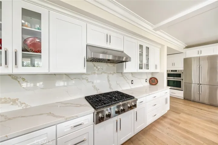 15816 La Pena Avenue, La Mirada – An Elegant Residence in the Prestigious Landmark Community. This exceptional home, fully renovated in 2023, perfectly combines sophistication, comfort, and functionality. Situated on a 13,033 sqft cul-de-sac lot, the residence offers about 5,903 sqft of refined living space, featuring 6 bedrooms, 7 full bathrooms, and a separate 861 sqft ADU with its own studio, kitchen, and bath. Step inside to discover the warmth of premium light oak flooring and an inviting open layout. The main level showcases a chef-inspired kitchen with a 6-burner range, oven with microwave, built-in refrigerator, and an additional fully equipped secondary kitchen. A grand center island, custom cabinetry, and abundant storage ensure both elegance and practicality. An elevator accommodating up to 4 passengers provides seamless access between levels, while a spacious living area and dedicated laundry room add comfort and convenience. Designed for the quintessential California lifestyle, expansive sliding pocket doors open to a covered patio, creating effortless indoor-outdoor flow. The beautifully landscaped backyard features a custom pool, relaxing spa, and low-maintenance turf lawn – perfect for entertaining or quiet evenings. A built-in BBQ station enhances the outdoor experience for gatherings large or small. The separate ADU provides exceptional flexibility as a private guest suite, home office, or independent quarters for extended family. Upstairs, the luxurious primary suite serves as a serene retreat with a soaking tub, oversized walk-in closet, and an additional leisure or family space. Ideally located within walking distance of La Mirada Golf Course and close to Walmart, Sam’s Club, major Korean markets, gyms, diverse restaurants, and charming cafés, the home offers unparalleled convenience for modern living. With a newer paid-off solar system that covers nearly all electricity costs, this residence combines energy efficiency with resort-style elegance. A true blend of timeless design and everyday comfort – one visit is all it takes to fall in love with this remarkable home. Don’t miss the 3D Virtual Tour and Video!