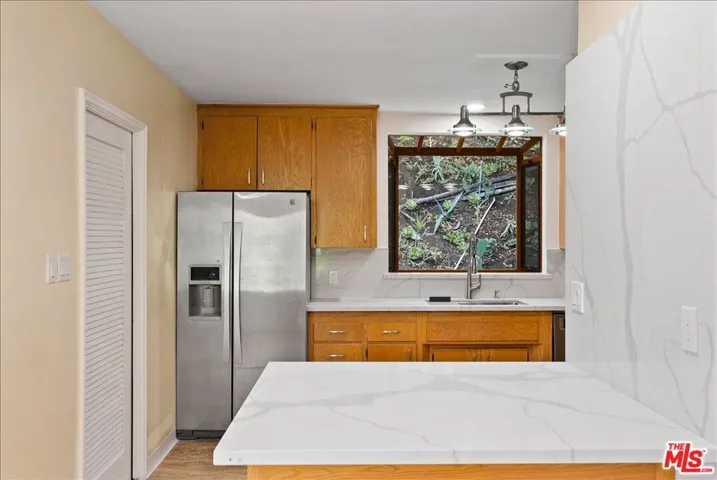Located in the heart of the coveted Fryman Estates area, escape from the hustle and bustle, yet moments away from everything Studio City has to offer. This rustic retreat is perched above the street overlooking majestic oaks and peaceful hillside views. Located amidst grand estate homes and nearby hiking trails. Home retains much of its original charm, with newly refinished oak hardwood floors throughout, and with tasteful upgrades, including newer dishwasher, gas range, and stainless-steel refrigerator. Home offers generous cabinet, closet and storage space. Enjoy the great room, with a wood burning fireplace, and a view window that captures the surrounding beauty and peacefulness. Steps in the hillside behind the house lead to an elevated patio area, and there is also a patio area on the side of the house. Located in the award winning Carpenter School District.