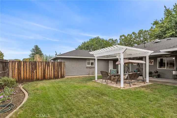 A sizable indoor laundry room is off of the kitchen. The laundry room features a utility sink, and extra storage cabinets with countertops for a convenient folding area. Through the laundry you enter the spacious, fully insulated 3 car garage. Next to the garage is an additional secured parking area for your RV, boat or bikes too! The back yard has a cozy pergola patio sitting area, and the back yard is fully fenced.