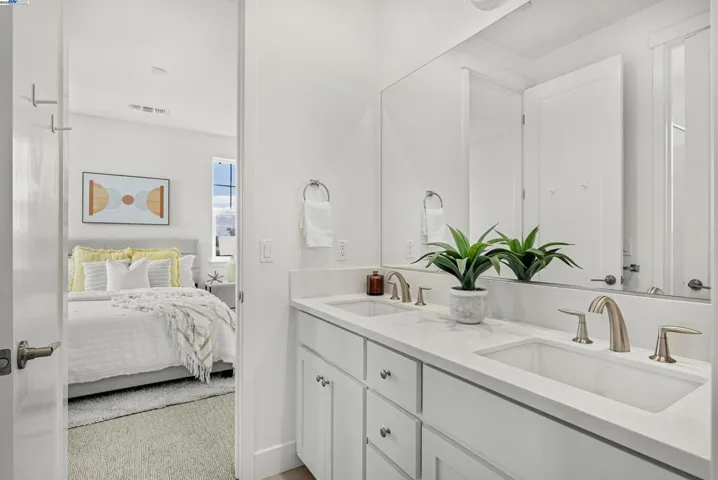 This stunning 4-bedroom, 3.5 bathroom home offers 2,410 square feet of thoughtfully designed space. The entire home boasts upgraded flooring with a mix of wood floor and carpet. The first floor presents a private suite complete with a bedroom, a full bathroom, kitchenette, and washer and dryer, perfect for guests or multi-generational living. Enjoy the convenience of a private entrance to this suite, offering independence and privacy. Ascend to the second floor, where the 10-foot high ceilings create an expansive living space, seamlessly connecting the kitchen and dining area. An upgraded open-plan living area, featuring a sophisticated kitchen with an enhanced island and stainless steel appliances. The spacious covered patio is perfect for relaxing or entertaining. The home is equipped with a water softening system. The owned solar panel system, complemented by a Tesla battery, underscores the home’s commitment to sustainability and energy efficiency. The community is close to Meta and Tesla, among other major employers. The residents enjoy a host of amenities like a park, a kid’s playground, BBQ and picnic area. Nearby National Wildlife Refuge offers open space with trails and nature to explore. Easy access to Dumbarton bridge and I-880.