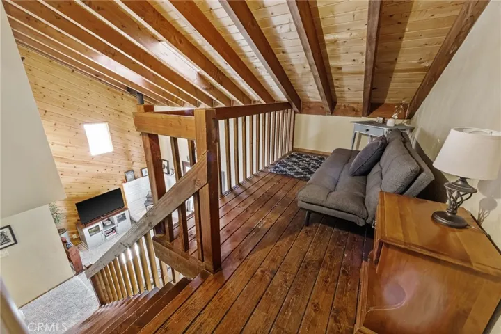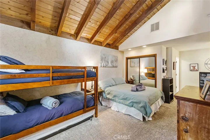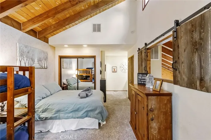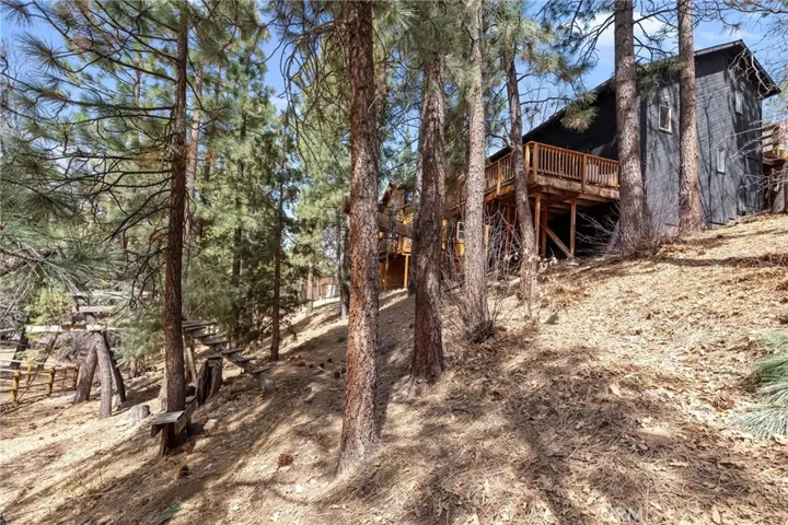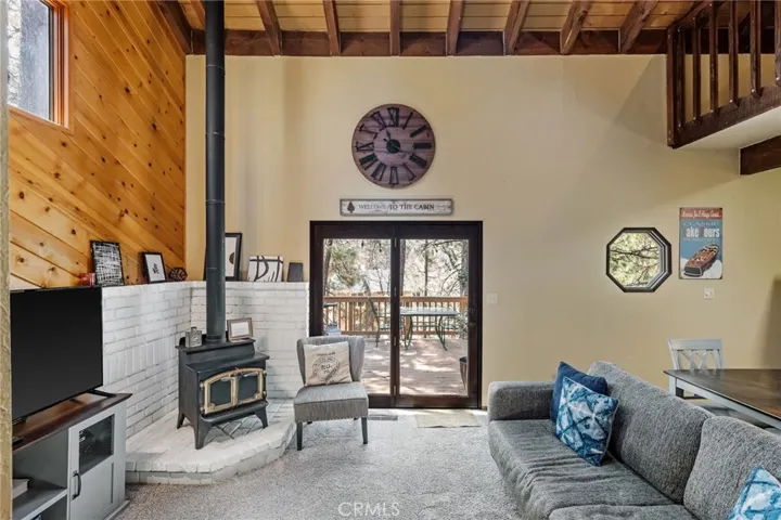The Perch Cabin is a darling cabin located in the heart of Upper Moonridge which is a quick jaunt to Bear Mountain, the Alpine Zoo and the coveted Big Bear Golf Course! Allow this charming mountain cabin to generate some rental income! Perfect for a long-term rental or a short-term. This home offers a cozy, open concept retreat with tall, vaulted ceilings that create an open and airy feel. Designed for both relaxation and adventure, this 2 story home offers a PRIVATE GUEST bedroom downstairs as well as a loft and second bedroom upstairs that comfortably sleeps seven guests. Your lofted sleeping area overlooks the inviting living space, where soft plush carpeting adds warmth and comfort underfoot. The cabin features a well-equipped kitchen and a patio with French hinged patio doors that showcase breathtaking views of the surrounding forest. Step outside to discover a backyard playground, perfect for families, with a tree platform, a ropes course, sledding hill and plenty of space for kids to explore. Whether you’re curling up with a book, headed to the slopes or bike trails, The Perch is the perfect mix of comfort and charm ready for you to make endless memories with your family! This home is available furnished too!!