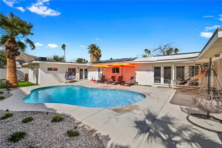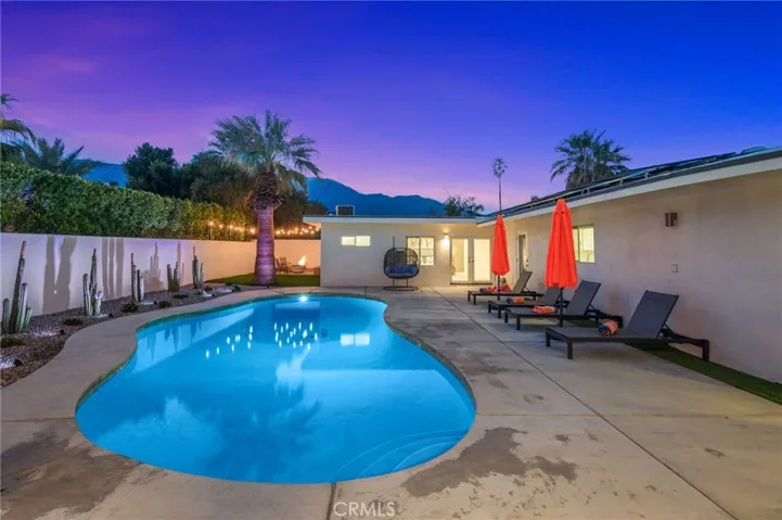 Welcome to your private oasis in the heart of Palm Springs—where modern design meets resort-style comfort. Step through a custom front door into a beautifully updated home featuring a sleek, contemporary kitchen complete with stainless steel appliances, eye-catching backsplash, recessed lighting, and tile flooring that flows seamlessly through the kitchen, dining, and living areas.