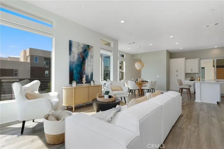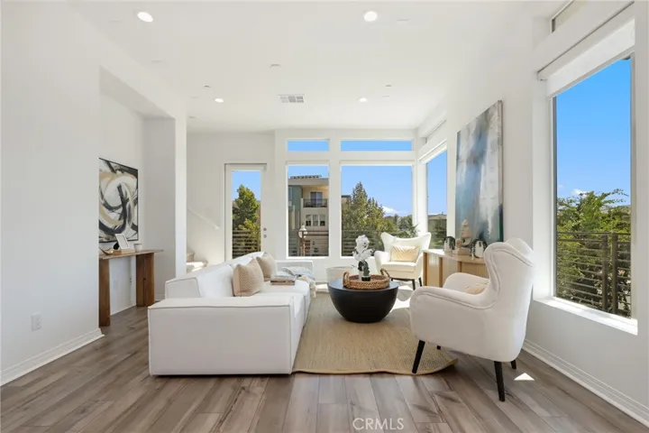Seamlessly extending your living space, the wrap-around patio, accessible from the second floor, creates a tranquil indoor-outdoor experience perfect for entertaining or unwinding in the California sunshine.