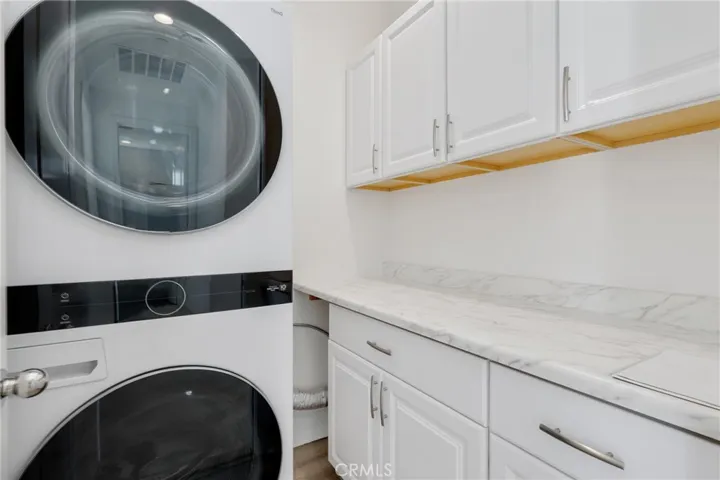 A full laundry room on third floor with washer, dryer, and built-in cabinetry adds ease and efficiency to daily living.