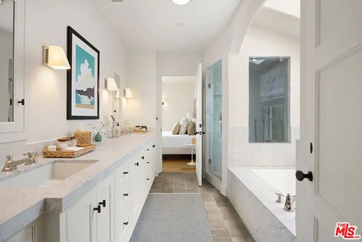 Exceptional design and an unbeatable location in the heart of Rustic Canyon. Nestled on a prime street, this sun-filled custom residence exudes warmth and sophistication. Built by Morrow & Morrow and designed by Steve Gianetti, this home features soaring ceilings, natural textures, a soothing color scheme and an intentional layout that flows seamlessly into serene outdoor living areas. Native landscaping harmonizes with the home’s architecture and the surrounding canyon. The main floor showcases a striking living and dining space, a tucked-away office for quiet work, a cozy eat-in kitchen, a spacious mudroom with direct access to the two-car garage, and a separate guest room with its own private entry. A few steps above, the secluded primary suite opens out to a lush lawn, pool and a tranquil path leading to a private cedar soaking tub. Upstairs offers flexibility with up to four additional bedrooms, two of which have been converted to an additional office and media room. A broad, light-filled hallway overlooks the main level and connects to a romantic balcony with views of the front garden. Crafted with exquisite finishes and interiors by Nickey Kehoe, this home delivers incredible ambiance while still being conveniently located near the best of the Westside and top-rated schools. A rare chance to own a property that combines elegance, location and architectural integrity. Access via Sunset now available.