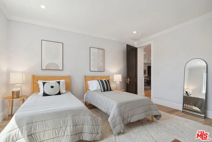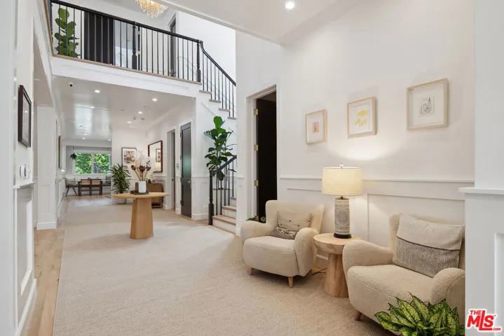 Modern Farmhouse located in the Melrose District of Los Angeles, near the West Hollywood border. Built in 2016 and updated in 2023, this 5-bedroom, 5.5-bath residence blends traditional architecture with modern comfort.The main level features a chef’s kitchen with Sub-Zero and Wolf appliances, marble counters, dual dishwashers, and a large island that opens to the living area and backyard. Additional spaces include a home office, media/theater room, formal dining room, and one ensuite bedroom.Upstairs offers four additional ensuite bedrooms, including a primary suite with private terrace, fireplace, and spa-style bath.Outdoors, enjoy a heated pool and spa, mahogany deck, outdoor fireplace, and multiple lounge areas surrounded by mature landscaping. Other highlights include two indoor fireplaces, whole-home audio, electronic window coverings, water-filtration and softener systems, and a two-car garage currently used as a gym. Gated parking and a private backyard complete this modern retreat near the best of Melrose and Fairfax.