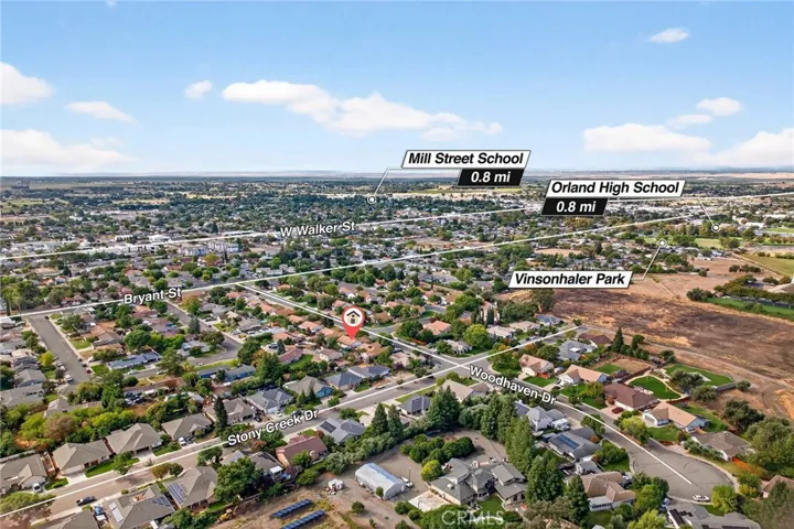 Welcome to a home that brings together comfort, space, and location. This 3-bedroom, 2-bathroom residence offers 1,504 square feet of well-designed living space with an open-concept layout and tall ceilings that make every room feel light and welcoming. A Spanish tile roof adds both style and lasting durability, while the attached two-car garage provides convenient parking and storage. The primary bedroom features its own private bathroom, offering a retreat-like experience. Two additional bedrooms provide options for guests, a home office, or hobbies—whatever suits your lifestyle. Step outside to a generously sized backyard, ideal for relaxing, gardening, or weekend barbecues if you’re feeling grill-inspired. Positioned in a desirable Orland neighborhood, you’re close to parks like Lollipop Land, schools including Orland High, and everyday conveniences such as grocery stores and restaurants like The Hive Kitchen & Bar. With easy access to commuter routes, this home complements daily life with simplicity and charm.
