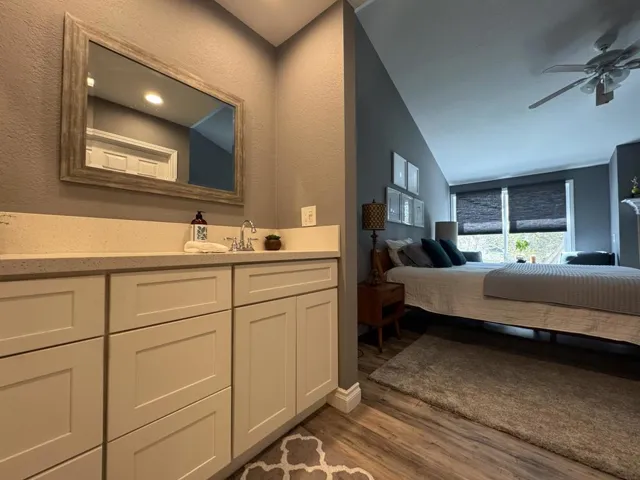 Beautifully Remodeled Home in Prime Community Location. Ideally situated in one of the most desirable areas of the community, offering 5 parking spaces, steps to the community pool and spa, additional guest parking, and expansive greenbelt — perfect for resort-style living. The open-concept floor plan features four bedrooms, or three bedrooms plus an office, 2.5 bathrooms, a nice kitchen with ample cabinet space, including a lazy Susan, and a spacious two-car garage with direct access. Enjoy outdoor living with two large patios, ideal for relaxing or entertaining. The well-maintained Shady Hollow gated community features HOA-covered amenities, including a community pool and spa, gated access, surveillance system, roof maintenance, exterior painting, wood maintenance with termite control, community lighting, landscaping, and tree trimming. Welcome Home! The property is situated on leased land that expires in 2049, with a monthly lease payment of $1,808.67. HOA’s dues are $705.17 per month.