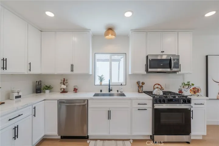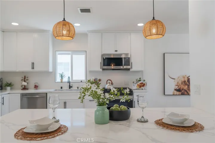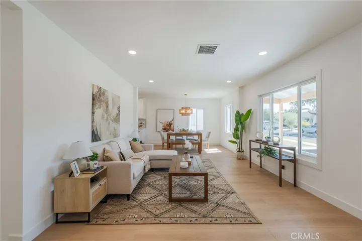 Welcome to this beautifully renovated single-story home, where modern design meets luxurious comfort. Located in a highly desirable neighborhood in Long Beach, CA. This stunning property boasts a spacious open floor plan with 4 generously sized bedrooms and various premium features that elevate your living experience. Two full bathrooms have been tastefully renovated with modern mid-century touches. Step inside through a beautiful wood door and be greeted by the inviting ambiance, enhanced by recessed lighting, new white interior/exterior paint, all new windows, and premium laminate wood flooring throughout the home. The heart of this home is the chef-inspired kitchen, complete with gleaming quartz countertops, all-new stainless steel appliances, custom shaker-style slow-close cabinetry, and a custom peninsula with a waterfall finish perfect for both cooking and entertaining. There is a warm and inviting family room and a separate formal living room, which features a beautiful fireplace, providing a perfect setting for relaxing. Enjoy the private and cozy backyard to host all of your special gatherings. The 2-car detached garage has been finished with drywall and new paint that can be used for an additional entertaining/hobby area. With its thoughtful design, premium finishes, and a fantastic layout, this home is the perfect blend of modern living and comfort. Don’t miss this chance to make this property your DREAM HOME!