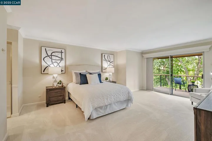 You’ll love the two spacious balconies offering fantastic golf course views! Enjoy serene vistas of rolling hills framed by both deciduous and evergreen trees. This desirable Villa Madrid model is a duplex that lives like a penthouse, with no shared walls for exceptional privacy. The elegant living room features a beautiful gas fireplace and classic wainscoting, creating a warm and inviting atmosphere. The kitchen offers abundant counter space and a large pantry, while the breakfast room is perfect for casual dining. The primary suite includes a secluded private balcony—your own peaceful retreat. A covered, oversized carport with a storage room is conveniently located at the bottom of the stairs. The Mutual (HOA) also offers its own club room for residents to enjoy.