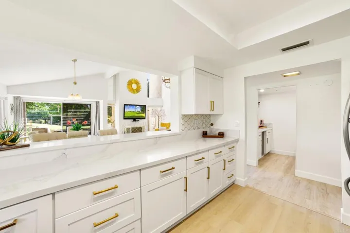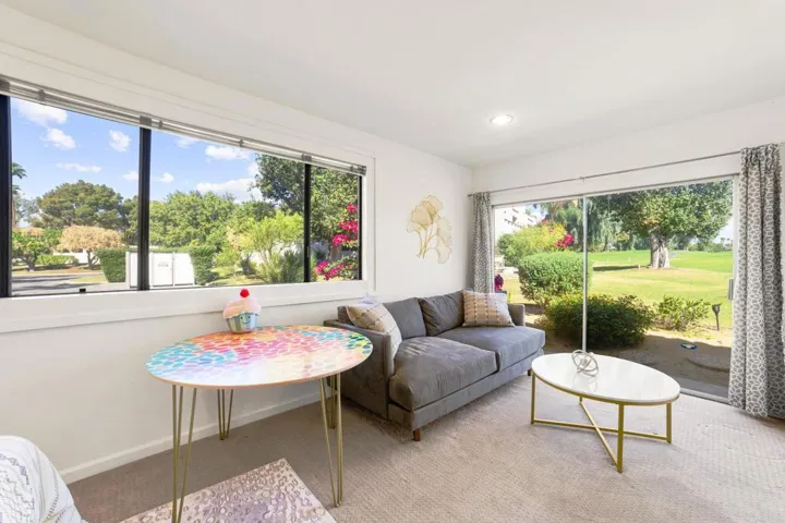 Experience Golf Lover’s Paradise! Sunny Mission Hills Country Club Townhome 2 bd, 2 ba plus den/office space as 3rd bedroom, single level home with the best unobstructed views of the 16th Hole on the Dinah Shore PGA Tournament course. Enjoy serene sunsets and tranquil mornings watching golfers from your private covered patio. Spacious interior boasts vaulted ceilings, large kitchen, and modern finishes. Newly remodeled, quartz counters, LVP flooring, elegant chandelier & fixtures, & new AC Compressor. Private end unit with the best views of greens! Peaceful Guard Gated Community with pool and jacuzzi. Home has 2 covered carport spaces and storage closets. Cable/Internet included with HOA. The Country Club features three 18 hole golf courses, 43 racquet sports courts, croquet, state of the art fitness center and dining. Land Lease extension to 2121 is available & conventional lending options. Conveniently located near Gelson’s, Casino, The River, and Eisenhower Hospital. Palm Springs Airport is just 15 minutes away. Turnkey for your enjoyment!