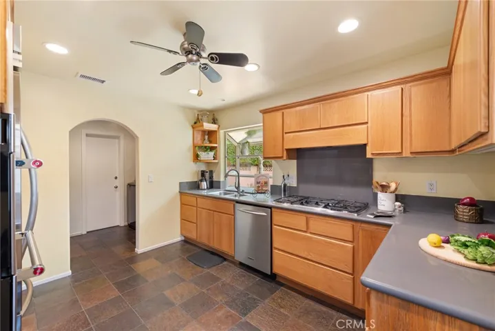 Welcome to this stunning residence in the highly sought-after Floral Park neighborhood of Santa Ana! Step inside and experience timeless appeal with modern convenience. This beautifully maintained home features original hardwood floors, a spacious open floor plan, and fresh interior paint. The inviting living and dining are enhanced by skylight that fill the space with natural light and a cozy fireplace that adds warmth and elegance. The family room offers a comfortable setting for gatherings, complete with built-in bookcases that add character and functionality. The kitchen, showcasing elegant Caesarstone countertops, premium appliances, slate flooring, and abundant wood cabinetry. The home’s layout provides privacy and comfort, featuring well-appointed bedrooms with window shutters, a Jack-and-Jill bathroom, and a second full bath with bathtub. A convenient laundry area adds practicality to daily living. Additional highlights include central air conditioning for year-round comfort. Step outside to enjoy the best of Southern California living — a low-maintenance backyard with pavers and a sparkling swimming pool, perfect for relaxing or entertaining. The long driveway offers ample parking and leads to a detached two-car garage. Nestled in the heart of Floral Park, one of Santa Ana’s most beautiful and historic neighborhoods, this home is surrounded by tree-lined streets, classic architecture, and a strong sense of community. Enjoy nearby parks, charming cafes, and local events that make this community one of the most desirable places to live.