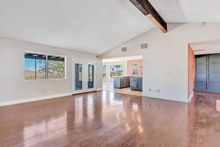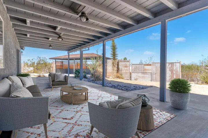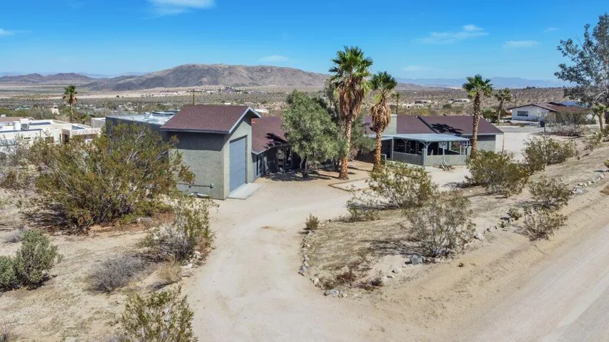 Let this home be your escape to the beauty of Joshua Tree with this desert home. With 4 beds and 3 baths, you’ll have plenty of room for entertaining. This place has it ALL; a potential RV garage currently used as a game/ entertainment area with its own rock wall! Enjoy the outside firepit on those summer nights under the expansive star-filled sky with friends and family. Make this your forever home or your home away from home. You wont want to miss this one, it wont last long!To help visualize this home’s floorplan and to highlight its potential, virtual furnishings may have been added to photos found in this listing.