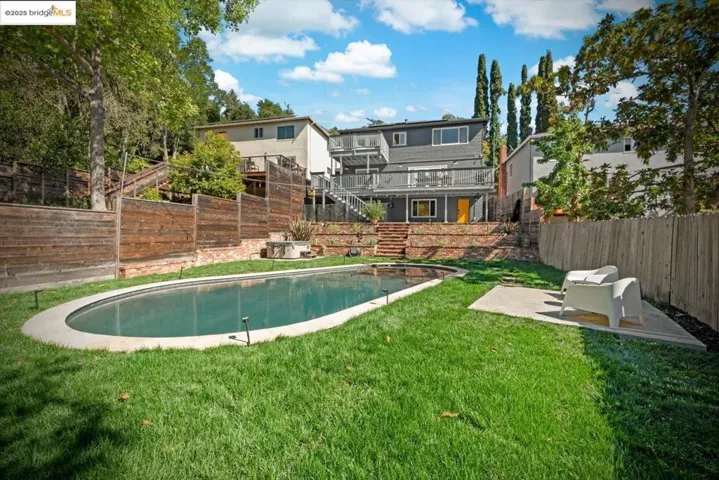 Private Redwood Heights retreat in a superb location. Enjoy the best this sought-after neighborhood has to offer: amazing micro-climate; families enjoying Avenue Terrace Park; dog walkers & bicyclists galore; minutes to 13 & 580; nearby Redwood Regional Park; close to shopping & Montclair’s iconic village vibe. This wonderful, updated home has many smart improvements including: updated kitchen (newer kitchen appliances, cabinets and counters, heath tile backsplash); updated bathrooms (rain shower heads, modern tile, soaking tub, bidet); ensuite primary bedroom with large dressing room and amazing, walk-in shower; electrical upgrade to 200 Amps; new hot water heater; newer roof. Enjoy the privacy, greenery, and peaceful outdoors from either of 2 large decks overlooking the backyard & your own swimming pool (recently rebuilt with a new pump and maintained weekly) surrounded by freshly installed sod, and a perfectly situated hot tub. New technology and ecological features include: owned solar system, Nest thermostat; CCS and NACS EV chargers; newer forced air HVAC system; dual pane windows; recessed LED lights throughout and designer dining room light fixture; energy efficient washer and dryer; drip irrigation; drought tolerant landscaping. Don’t miss this fantastic opportunity!