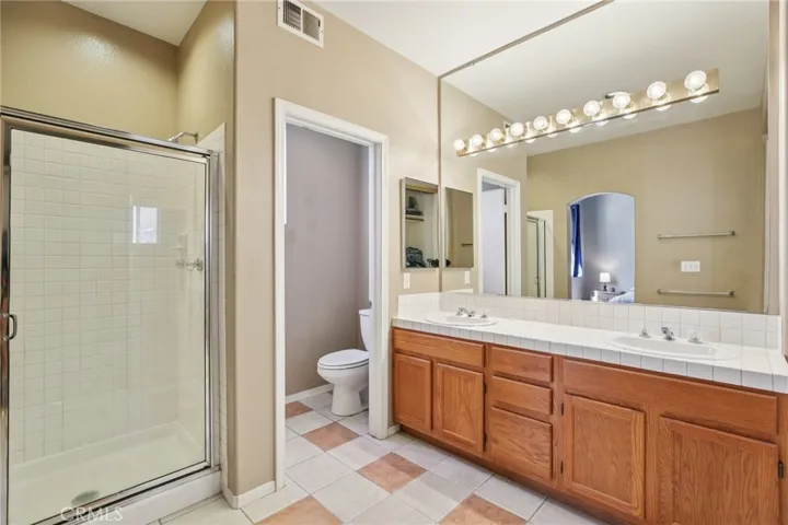 Move-in ready 2 bed, 2 bath home located within the highly desirable Andalusia community at Menifee Lakes is ready for its new owner! NOT A 55+ COMMUNITY. Conveniently located 3 doors away from the community pool and spa as well as exclusive access to the Lakes! This turn-key home features great curb appeal with well manicured landscaping, and the interior is open and spacious with vaulted ceilings, carpet, and tile flooring, and neutral paint scheme. The living room features skylights, a cozy fireplace, and flows into the formal dining room which sits just off of the kitchen with wood cabinetry offering lots of storage space, tile countertops, and an in-kitchen breakfast nook area. Both bedrooms are generously sized with the large primary suite featuring a private ensuite with dual sink vanity and a walk-in shower. There is also a hall bathroom for the second bedroom and guests to share, as well as a laundry room with additional storage space and direct garage access. Enjoy the low maintenance backyard with full fencing, concrete and rocks – this is the perfect space for a patio set and to entertain guests! Residents also get to enjoy an assortment of amenities including a sparkling pool and spa, playground, trails, tennis courts, basketball courts, and exclusive access to Menifee Lakes! Also conveniently locate near the new Menifee Library, Wheatfield Park, as well as schools, shopping, dining, and more! Schedule your private tour today!