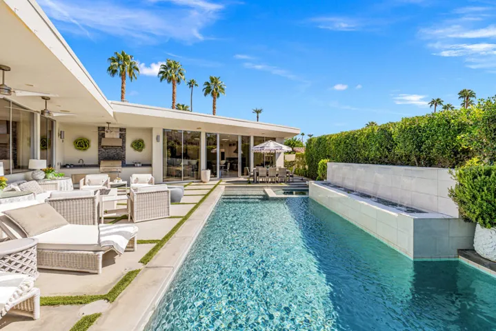45715 Cholame ”The Beautiful One” Way – Indian Wells Living at Its Finest!Situated on a quiet, elevated cul-de-sac in the heart of Indian Wells, this 4,003 SF mid-century residence–originally built in 1958–has been extensively reimagined and thoughtfully expanded to embrace today’s luxury lifestyle. The ultra-private setting captures stunning south and west mountain panoramas from nearly every angle. A light-filled great room with wall-to-wall glass and a chef’s kitchen creates the perfect environment for both casual dining and elegant entertaining. A seamless indoor-outdoor connection opens to the reconstructed pool patio (2020), where wrap-around mountain views provide a spectacular backdrop for day or night gatherings. The outdoor space features an inviting PebbleTec saltwater pool and spa, a tranquil cascading water feature, cozy fire pit, and a built-in BBQ area. The spacious primary suite frames magnificent mountain vistas and opens directly to the pool patio, while three guest bedrooms offer comfort and privacy for family and friends. Major upgrades completed in 2024 and 2025 include new HVAC equipment, a new roof, and owned solar–adding modern efficiency and peace of mind for the fortunate new owner. The street name, Cholame–a Native American word meaning ”The Beautiful One”–perfectly reflects the character and setting of this extraordinary Indian Wells home. Don’t miss this opportunity to own a home in one of Indian Wells most secluded locations!
