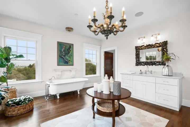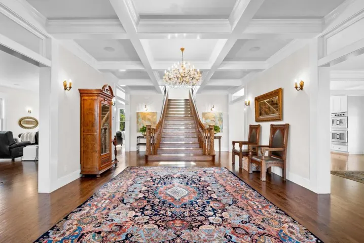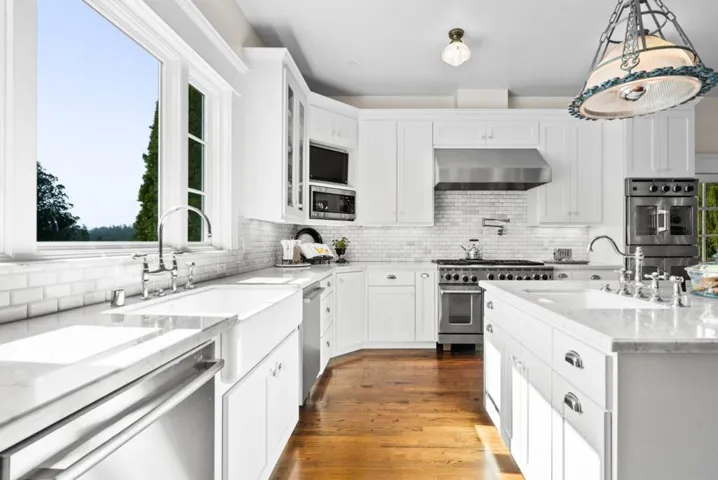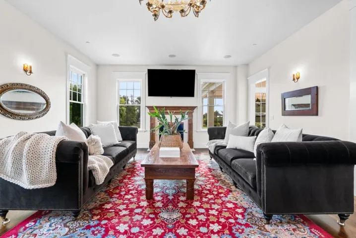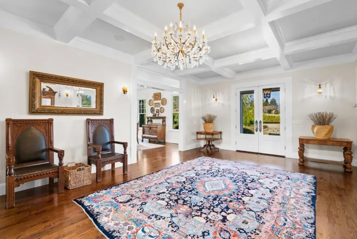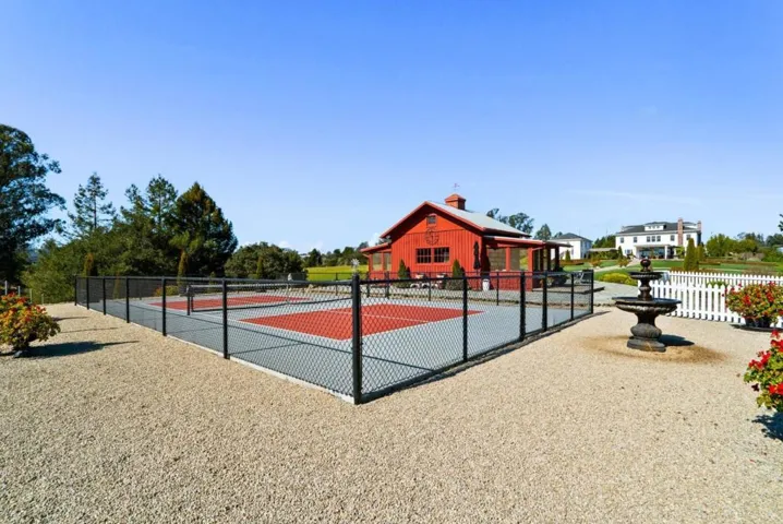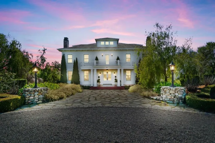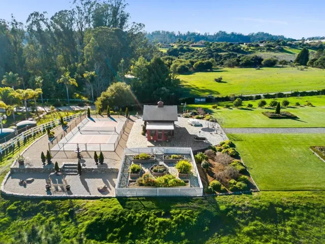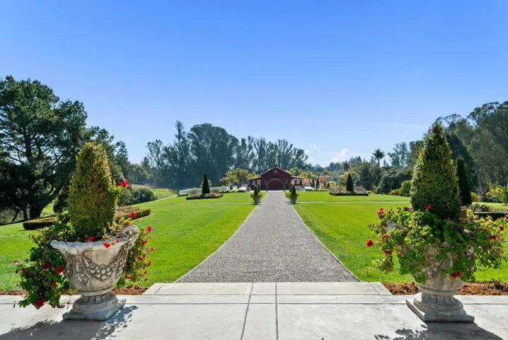 A modern country estate offering a captivating blend of refinement, sophistication & California living at its finest. Designed for both entertaining & luxurious everyday living, integrating breathtaking views, contemporary amenities & tranquility. Gated entry gives way to alluring front porch, leading to the spacious foyer featuring coffered ceilings & grand staircase. Elegant oak floors can be found sweeping throughout. Chefs kitchens w top tier appliances, large island & walk-in pantry. Natural light abounds as expansive windows provide panoramic vistas, framing the lush grounds like living masterpieces. Thoughtfully designed floorplan blends high end finishes & effortless livability. Situated on 5+ landscaped acres, the manicured grounds create an entertainers paradise. Indoor-outdoor living is enhanced by a generous patio complete w its own kitchen. Stroll the outdoor oasis of manicured lawns & rows of citrus trees to a fenced garden featuring raised beds & potting shed. Pickleball anyone? Enjoy countless hours of fun on your own court, making a lifetime of memories. Car enthusiasts rejoice in the 3 car garage for all your treasures. Separate ADU located above the garage. A rare opportunity to own a serene retreat, a bespoke masterpiece designed for those seeking their ace.