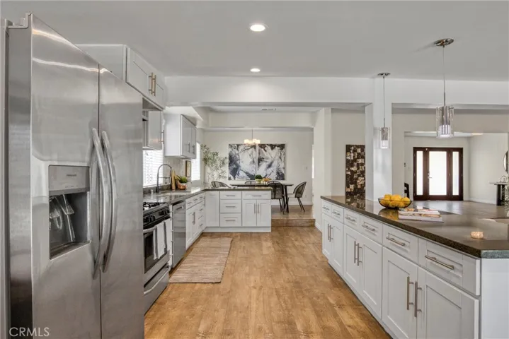 This bright and inviting residence features an open floor plan with 3 spacious bedrooms and 2 full bathrooms, offering a seamless flow for everyday living. The formal entry leads to a gracious living room and formal dining area while the breakfast nook adds a cozy touch for casual meals. The stunning chef’s kitchen is complete with sleek granite countertops, light toned cabinetry and stainless-steel appliances – perfect for entertaining or family gatherings.