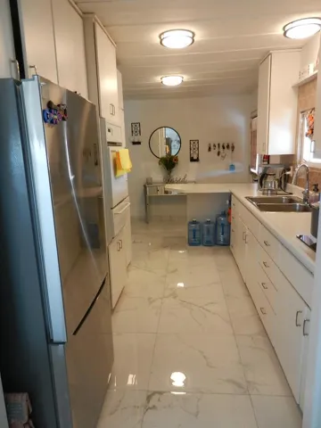 Completely remodeled, with beautiful white tile flooring throughout; updated kitchen cabinetry, and lighting as well as independent oven; upgraded and updated bathrooms; new paint in and outside. Outside: a separate and individual climate controlled laundry area; two car garage, detached, and another detached one car garage/storage or multiple use room; built in BBQ, a 56′ concrete floor covered patio/car-port for either keep your car/s out of the sun or guest those family and friends gatherings, also a paved driveway and front uncovered patio , brand new wood fencing and chain link gate makes this a very desirable, and functional first time home or second home with plenty of room for outdoor meetings/parties, you name it. Wait no more and make it yours now.