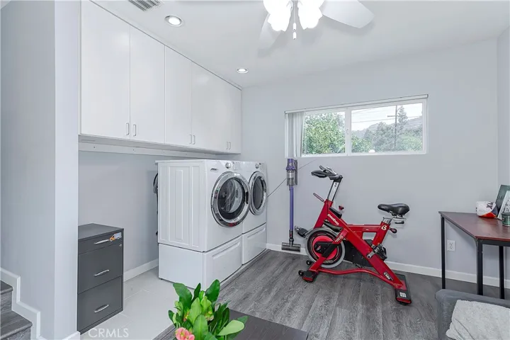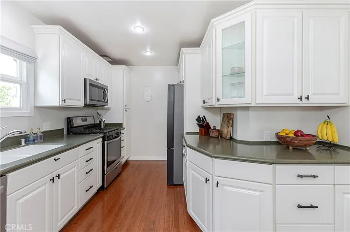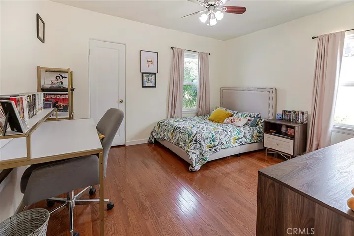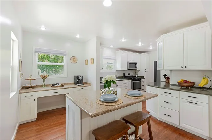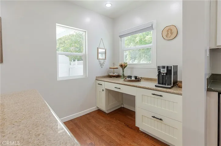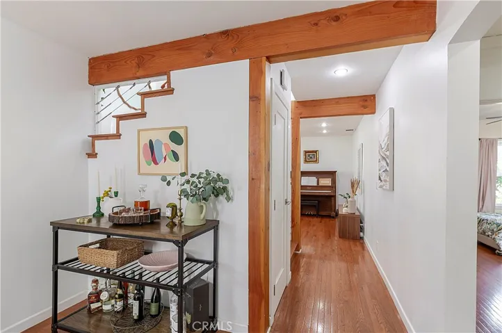 Welcome to 1742 El Rito Avenue, a modern 4-bedroom, 4-bathroom home tucked away on a peaceful street in Glendale’s Verdugo Woodlands. Remodeled in 2013, this home offers thoughtful updates and smart energy-saving features like Structural Insulated Panels (SIPs), dual-pane windows, and remote-controlled skylights. Inside, you’ll find a warm, light-filled living room with beamed ceilings, hardwood floors, and recessed lighting. The dining area is open and spacious, flowing into a functional kitchen with granite countertops, stainless steel appliances, an island with bar seating, and a built-in desk nook. Downstairs, there are two generously sized bedrooms, two updated bathrooms, and a bonus room that can be used as a gym, office, or even a fifth bedroom with access to the backyard. Upstairs are two more en-suite bedrooms, including a comfortable primary suite with a walk-in closet, vanity space, and an accent wall with custom arched inlay. Other highlights include drought-tolerant landscaping, two HVAC systems, and a detached two-car garage. All of this is located on a quiet, tree-lined street surrounded by sycamores and tucked into one of Glendale’s most desirable neighborhoods.