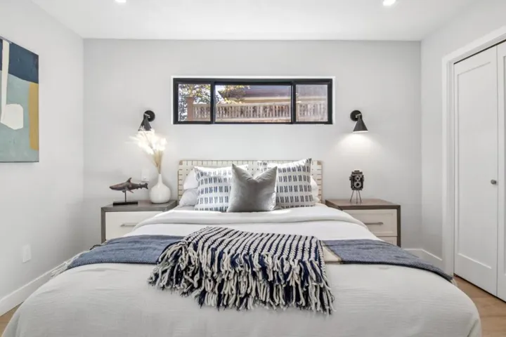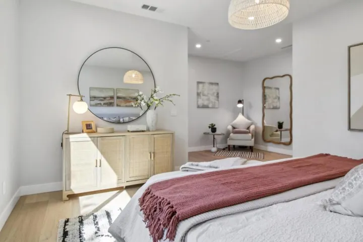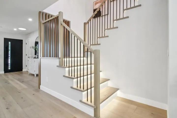 East-facing and newly expanded, this stunning 5-bed, 4-bath home lives like a brand-new build with 3,169 SqFt plus a permitted 742 SqFt workshop, totaling 3,911 SqFt on a 10,998 SqFt lot. Soaring vaulted ceilings, skylights, recessed lighting, and wide-plank 5/8″ x 10.25″ engineered wood floors create a bright, airy, and inviting feel throughout. Charge any EV with the Tesla Universal Charger. Main level features open-concept living with fireplace, dining, chefs kitchen with pantry, extra storage, custom cabinetry, statement lighting, sleek porcelain counters, and high-end Miele appliances. 3 bedrooms and 2 baths include a private en suite with vaulted ceiling, spa bath, smart toilet, and direct yard access. Upstairs has two en suites, including a luxe primary retreat with custom walk-in closet, built-ins, oversized spa bath with soaking tub, dual vanity, and walk-in shower. Outdoors offers lush lawn, large paver patio, mature landscaping, pickleball court, and versatile workshop with built-ins and TV for entertaining. RV/boat parking, 2-car garage, and ample driveway. Excellent schools: Sartorette Charter, Price Charter, Leigh High, plus Harker & Challenger. Rare chance to own a like-new home blending modern design, thoughtful upgrades, and versatile spaces in prime Cambrian!