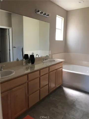 Large master suite, walk in closet, front balcony, open bathroom area, oversized tub, separate shower.