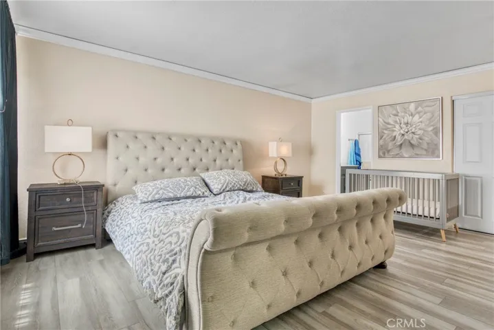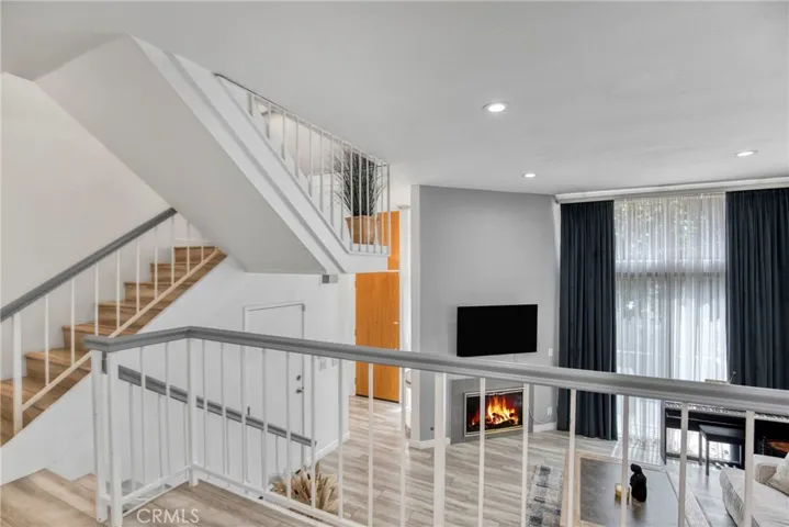 Welcome to this stunning tri-level townhome in the coveted Northbrook community, offering 2 bedrooms, 2.5 bathrooms. The living room impresses with floor-to-ceiling windows, recessed lighting, and laminate flooring, all overlooking lush greenbelt views. A private patio. The beautifully remodeled kitchen boasts Quartz countertops, stainless steel appliances, ample cabinetry, and an upgraded wet bar. The formal dining area provides plenty of seating, with a nearby powder room for guests. Upstairs, the spacious primary suite features a walk-in closet, recessed lighting. The second bedroom includes its own private bath. The attached two-car garage offers direct access, storage cabinets, laundry hookups, The HOA includes water and sewer, earthquake insurance, 24-hr security. This unit includes a spacious two-car garage with direct access to the home. Residents have access to a large swimming pool, tennis court, and peaceful water streams running throughout the area.