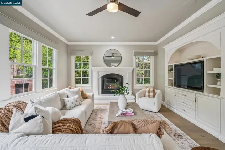 Nestled within the gated neighborhood of Diablo Ranch Estates, this stunning home offers privacy and luxury. Upgraded with rich hardwood flooring, freshly painted interiors, and custom designer light fixtures, the home exudes a modern, inviting elegance. The main level showcases a formal living room and an elegant formal dining room designed for entertaining. A private home office with an ensuite bath offers versatility—which can easily be converted into a true bedroom. The inviting family room features a built-in media center and the remodeled chef’s kitchen impresses with abundant custom cabinetry, tile flooring, and stylish backsplash. Additionally, this kitchen boasts premium stainless-steel appliances, including a Sub-Zero refrigerator, six-burner Viking cooktop, double ovens, and a dishwasher, as well as dual sinks with filtered instant-hot water feature for added convenience. Discover the primary bedroom suite upstairs, with a cozy fireplace and a remodeled ensuite bath. This spa-like bath highlights a walk-in shower with multiple shower heads, soaking tub, dual sinks and an oversized walk-in closet. The upper level is complete with 3 secondary bedrooms and an expansive bonus room with closet. Walking distance to the Athenian School & minutes away from Diablo Country Club.