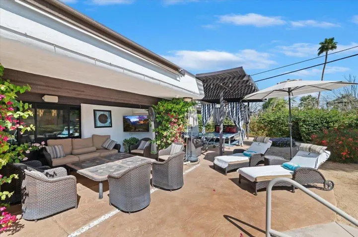 $10k /month for November , $12k/ month for December, $15k/month for January or February, and $20k/month for March or April- will also consider $60k for 6 months| Completely remodeled, fully furnished, turn-key, South Palm Desert compound | NO HOA | A+++ location – Walk to El Paseo | Main house is approx. 3900 sqft. and consists of 3 large En Suite ( all have private full baths) bedrooms plus 1/2 bath | Recently remodeled Gourmet kitchen with open floorplan, breakfast bar with 5 seats, gas cooktop, Double ovens, Modern fridge and custom cabinets and pantry | Incredible fully equipped bar area with sink, ice maker, wine/beverage fridge, bar dish washer, and 4 stool bar | high soaring ceilings in the living room/family room area with dramatic dual sided gas fireplace | Amenities also include full size shuffle board table, 2 player video game station, Ping pong table, Sonos system with 5 speakers and 6 mounted TVs included | Back bedroom sleeps 4 and has Infra -Red spa in bathroom| Back yard includes pool, spa, misting system, cabana/bed area, BBQ , gas firepit , TV and lush mature landscaping | Like new ( completed in 2022) approx. 600 sqft. ADU/Guest house with 2 bedrooms ( sleeps 5 comfortably, fully equipped kitchen ( stackable washer/dryer in place) and full bathroom| Entire property is serviced by top of the line water filtration system and solar system | 2 car garage + 2 car carport, and oversized driveway | Very private, completely fenced, fully landscaped grounds with water saving desert-scaping | Rarely available, Fully stocked, turn-key luxury South Palm Desert residence. **** lease will include all utilities with a max for any​​‌​​​​‌​​‌‌​​‌​​​‌‌​​​‌​​‌‌​​‌‌​​‌‌​​​​ overagges