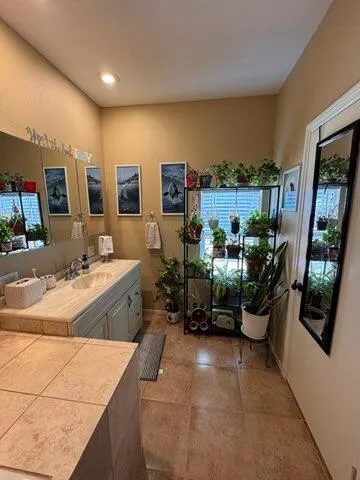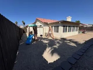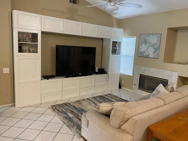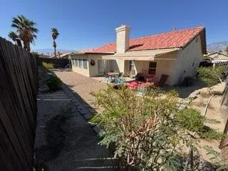 Welcome to this wonderful home in a quiet community with quick access to the I-10 freeway, Costco, Sam’s Club and other shops and delicious restaurants in Rancho Mirage and Palm Desert. It features 2 bedrooms and 2 baths with a fully insulated bonus sun room, including a swamp cooler (for when you don’t want to use the central air conditioning), which leads through double doors to the back yard. An open, charming living room with high ceilings and a cozy fireplace greets you from the front door. Low maintenance desert landscaping in the front and back yards with a retractable awning over the pavers giving a nice shade when you want it, and close it for those beautiful desert nights when you want to gaze at the stars. Bedroom featuring distressed laminate flooring and a master bathroom with dual vanity and walk in closet. Guest bathroom has a single vanity, deep soak tub with shower, and another walk-in closet. Stainless steel appliances in the kitchen with expansive granite countertops, designer back-splash and plenty of cabinets and drawers for all of your culinary tools.
