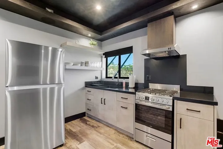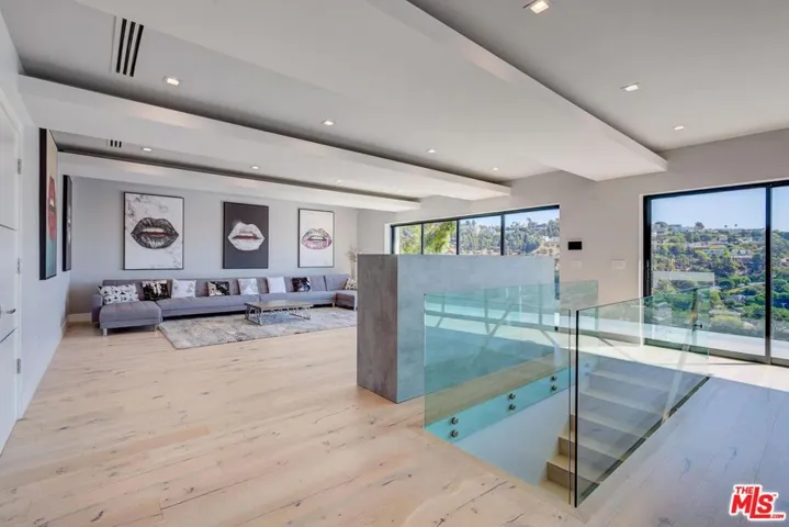 FULLY FURNISHED AND FULLY EQUIPPED, AVAILABLE FOR SHORT TERM RENTAL. Ultra-modern smart home is located in the lavish Hollywood Hills. From the wood & wrought iron accenting, to the brushed cement walkways, this dashing property radiates style & flare. The elegant entryway welcomes you into a bright & luxurious open floor plan. Your eyes can’t help but be drawn to the stunning LA skyline, framed by the floor to ceiling window walls. Light hardwood flooring & frameless glass paneling, pair effortlessly with the chic white & charcoal furnishings. Coupled with liner fireplaces, backlit ceiling beams, and state of the art technology, this home is the peak of modern luxury. This property is integrated with a Control 4, smart-home system. Control the entertainment content, 35-speaker surround sound system, LED scene lighting, temperature, and security system, from anywhere in the world with your Control 4 application. With new stainless steel appliances, a chilled wine closet, ample counter space, and a large island, this bright & fresh kitchen. The downstairs bedroom with its own living room.