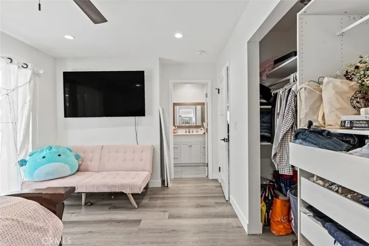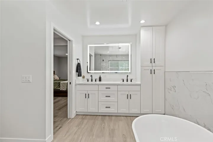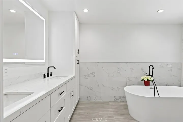 The primary suite offers a walk-in closet and a beautiful bathroom with a relaxing soaking tub, ideal for unwinding after a long day.